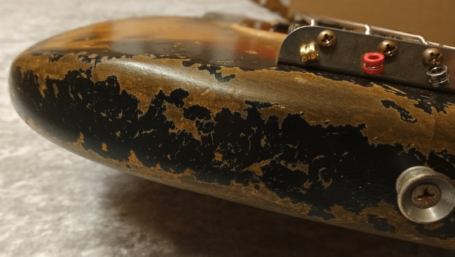Latest creation to leave the Bravewood workshop, one for the bassists...a very cool early ‘60’s style P type bass finished in an equally cool heavily distressed sunburst.