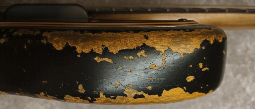 The bass is meticulously and accurately distressed (I can honestly tell you the ageing and distressing on the body alone took four solid days of work), made and finished as it would have been back in the day, yellow dye applied first and then sprayed with the sunburst bands of colour. Once distressed this leaves areas of visible dye in the wood, again as is often seen on vintage sunburst originals.